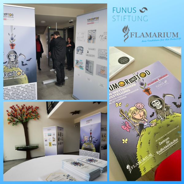 Diese Ausstellung bietet eine humorvolle und dennoch tiefgründige Perspektive auf die Endlichkeit des Lebens und den Umgang mit dem Tod. Nun ist es an der Zeit, auch anderen Einrichtungen die Möglichkeit zur Ausstellung dieser Werke zu geben. Nach vielen Monaten im Foyer des Zentrums für Endlichkeitskultur verleihen wir die Ausstellung nun an interessierte Institutionen, Kultureinrichtungen und andere relevante Orte.