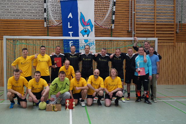 Der Totenkopfhase auf dem Trikot passte sehr gut zu uns als Hauptsponsor. Auf der Hose fanden noch ein Pflegedienst und eine Eventfirma einen Platz. Auch die Sportfreunde vom SV Althen 90 liefen in ihren gelben Flamarium-Trikots auf.